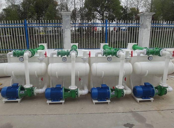 聚丙烯PP真空机组体积小,结构紧可移动,噪音低,能耗低便于综合利用。水汽串联喷射真空机组,耗气量小可获得更高的真空度,工作稳定,使用方便。在安装使用前,须仔细检查各部位紧固件是否松动,若有松动须校正拧紧。开机前水池须加满水,打开泵进口阀,严禁脱水空转及反转,以防止损坏机封和泵。停机前先放空或真空度降至0.092Mpa以下,然后停机以防真空度过高,倒吸易损坏止回阀,(如止回阀失灵,请打开止回阀盖,清除杂物)。