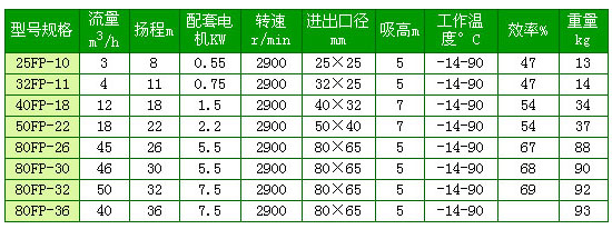 FP系列离心泵采用增强聚丙烯(RPP)一次注塑成型、质轻、强度高、不结垢、耐腐蚀。 泵轴和叶轮同步注塑、介质不同金属接触,配用耐强腐蚀机械密封。